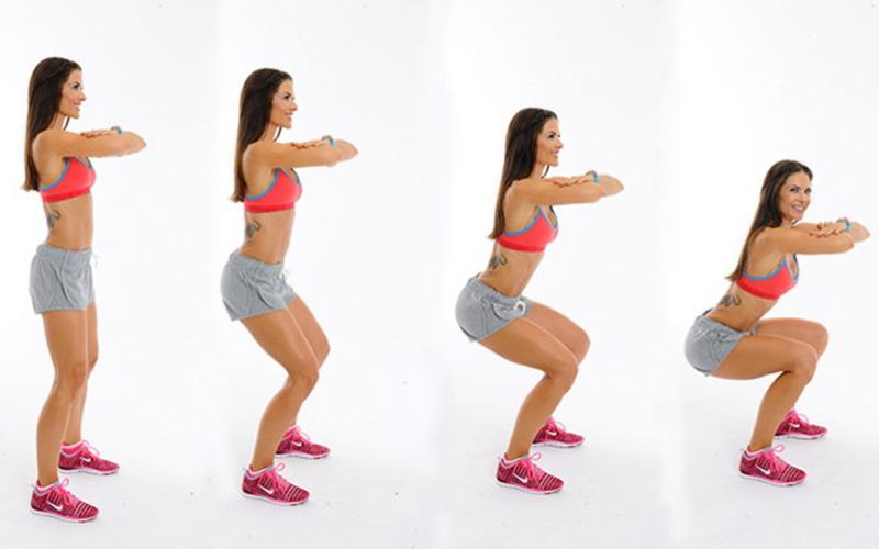Bước 3: Cuối cùng bạn giữ nguyên tư thế trong vòng 2 giây rồi trở về vị trí bạn đầu. Lập đi lập lại như vậy trong 3 lần, mỗi lần 10 cái Squat trong một ngày.